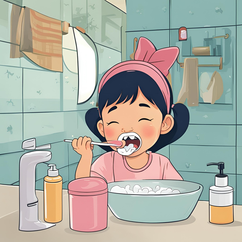 She first got dressed, ate her breakfast and then she brushed her teeth.
